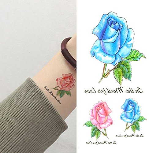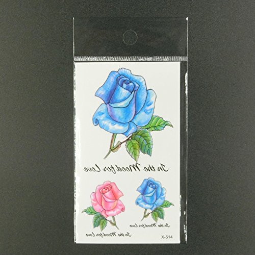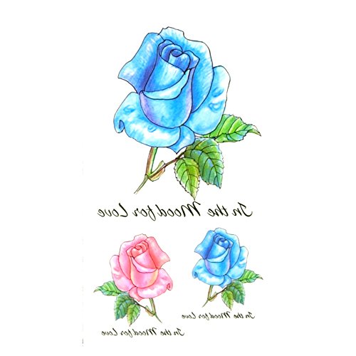 Oottati Small Cute Temporary Tattoo Blue Red Rose (2 Sheets)