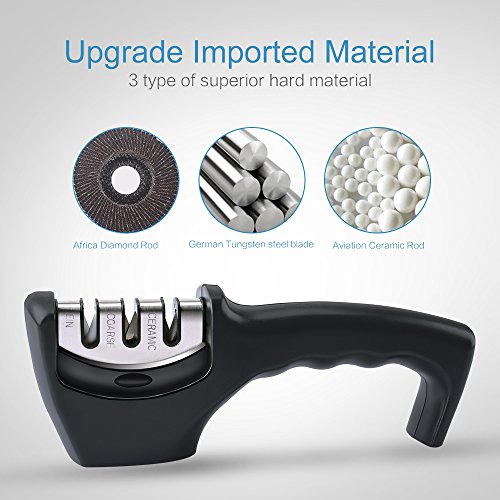 Upgrade Sharpening Material - Benefit from our technical breakthrough, 3 kind of sharpening material get higher hardness and durability to repair our knife.