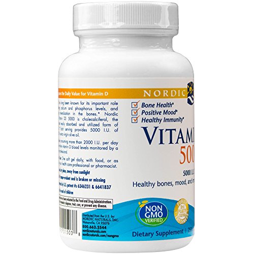 -. Feature : 5000 I.U. Vitamin D3 For Healthy Mood, Immune Function, Bone Health / Vitamin D Has Long Been Known For Its Important Role In Regulating The Body'S Levels Of Calcium And Phosphorus, As Well As Increasing Mineralization In The Bones.Nordic Naturals Vitamin D3 5000 Is Cholecalciferol, The Natural, Most Easily Absorbed And Utilized Form Of Vitamin D.Each Serving Provides 5000 I.U. Of Vitamin D3 In Extra Virgin Olive Oil. Note: People Consuming More Than 2000 I.U. Per Day Should Have Their Vitamin D Blood Levels Monitored By A Health Care Professional.