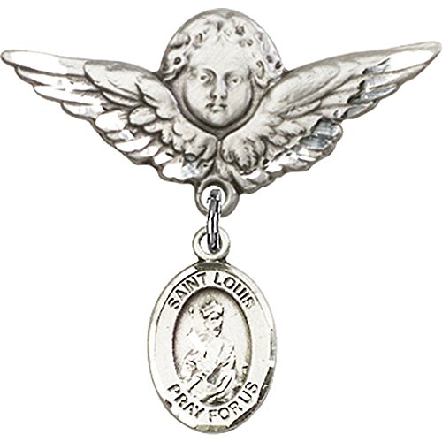 -. Title : Sterling Silver Baby Badge with St. Louis Charm and Angel w/Wings Badge Pin 1 1/8 X 1 1/8 inches