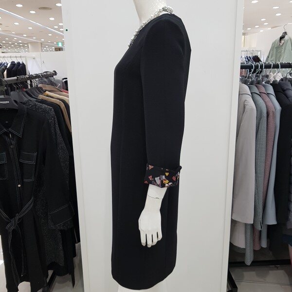 36인치 기장의 심플한 원피스 입니다. 베이직한 실루엣으로 바디라인을 따라 툭 떨어져 슬림해 보이고 체형커버 하기 좋은 원피스 입니다. 소매 미까시 배색이 들어가 포인트를 주어 페미닌한 매력을 더해주었고 단아한 분위기를 연출해주는 원피스 입니다. 격식있는 자리에 깔끔하게 입기 좋은 디자인 입니다.