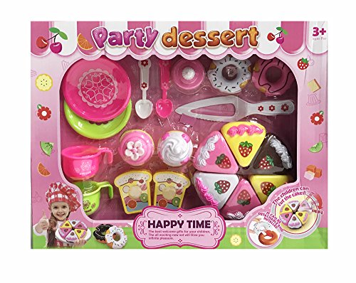 -. Title : Birthday Party Fruit Cake Toys Pretend Food Playset for Children Boys Girls Education Cutting Food Take Apart Deserts Toy Set Tea Cup Donut Cupcake 20 Pieces for Ages 3+