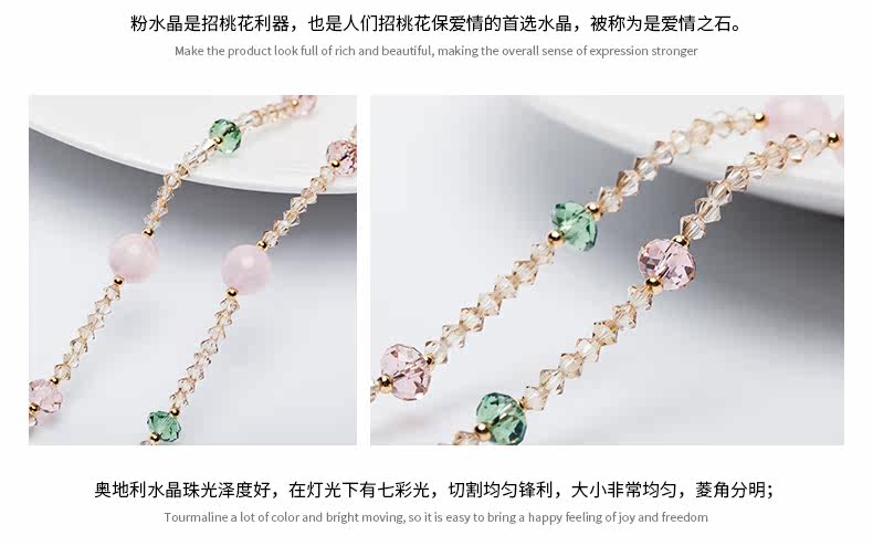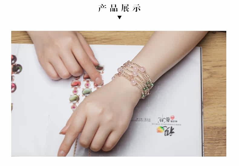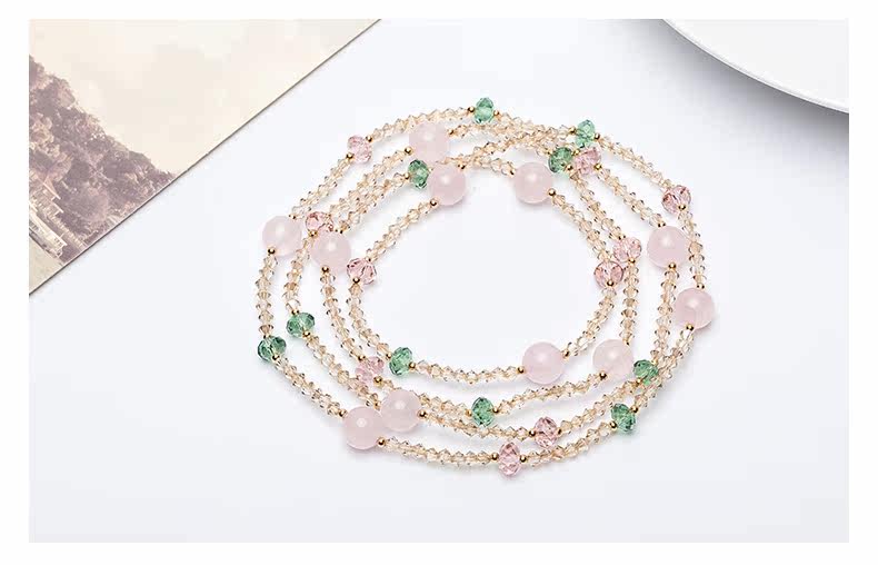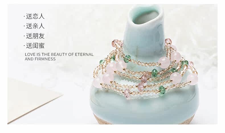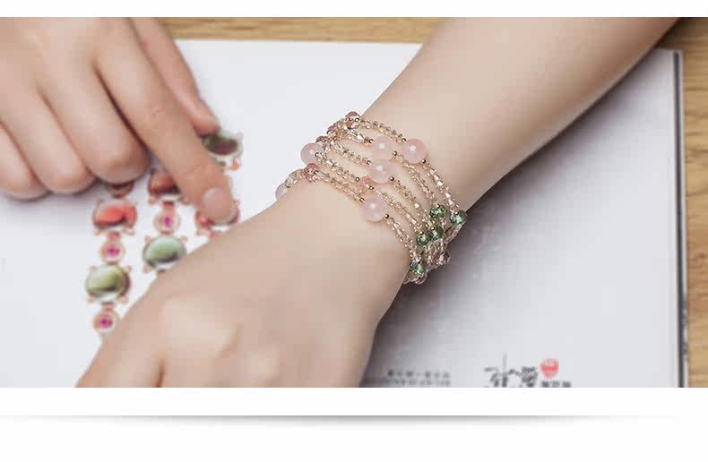 原创天然粉水晶多圈手链女奥地利水晶简约首饰品手串礼物