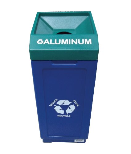 Forte Products 8002480 Open Top Plastic Recycle Bin with Aluminum Graphic, 14.5" L, 36" H, 21.5" W, Blue and Green