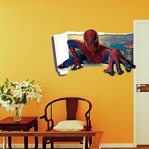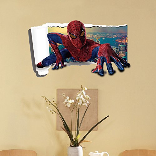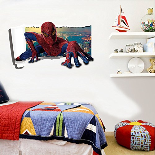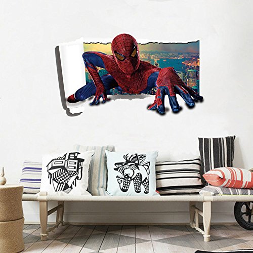 -. Title : Fange DIY Removable 3D The Spider Man Super Hero Art Mural Vinyl Waterproof Wall Stickers Kids Room Decor Nursery Decal Sticker Wallpaper 35.4''x23.6''