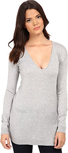 Asymmetrically curved side seam sets off the fitted, longline silhouette. Smooth, soft sweater knit in a light cashmere blend. Curved V-neck. Long sleeves with dropped shoulders. Rib-knit cuffs. Tunic-length hem with deeply slit sides. 40% viscose, 30% nylon, 25% polyester, 5% cashmere. Hand wash and dry flat. Made in the U.S.A. and Imported.