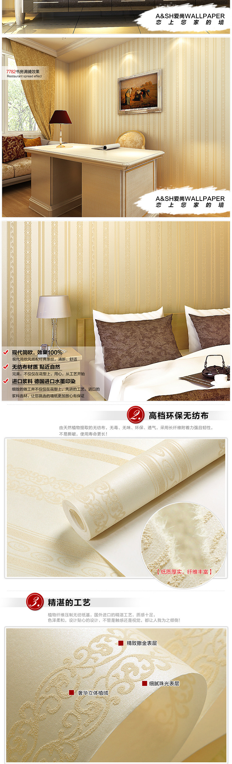 New Brand Environmental Modern Simple Thicken Non-woven Fabric Wallpaper/wall Stickers Living /Bedroom/sofa background decoration Home decor 0.53*10m/roll singapore
