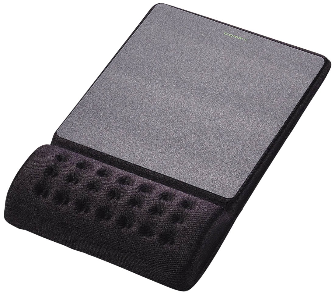 A wrist rest integrated mouse pad that reduces wrist fatigue.