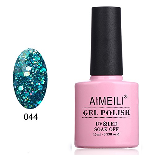 -. Binding : Misc. -. Brand : AIMEILI -. EAN : 0701851249265 -. Feature : 14-day high-gloss wear , On like polish, Wears like Gel, Off in minutes / Mirror shine finish. No Nicks, Chips or Smudges / Requires drying under UV or LED Lamp / Please note: with glitter, product is thick. Due to the lighting and screen setting, color may vary slightly from the picture. -. IsAdultProduct : 0 -. Label : AIMEILI -. Manufacturer : AIMEILI -. MPN : 044 -. PackageQuantity : 1 -. PartNumber : 044 -. ProductGroup : Beauty -. ProductTypeName : BEAUTY -. Publisher : AIMEILI -. Studio : AIMEILI -. Title : AIMEILI Soak Off UV LED Gel Nail Polish - Diamond Glitter Teal Blue Green (044) 10ml -. UPC : 785217375768