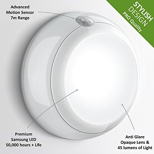 PREMIUM QUALITY DESIGN we know you will love. Stunning design and an opaque, anti-glare lens. The latest Samsung 50,000 hour life, high-brightness, low energy consumption LED-technology. 23 feet movement detection. Longer life with AA batteries (not included) instead of the AAA of other offers.