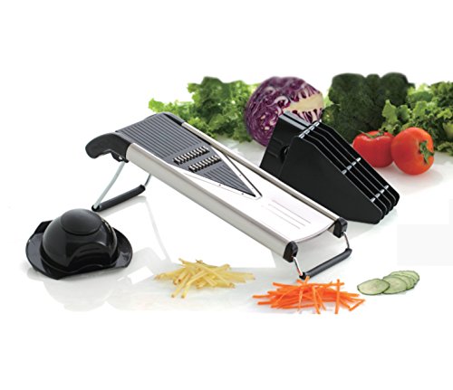 PROFESSIONAL MANDOLINE SLICER - POTATO, VEGETABLE & FOOD MANDOLINE WITH 5 STAINLESS STEEL V BLADES JULIENNE,GRATE,SLICE AND DICE. BEST RESULTS EVERY CUT