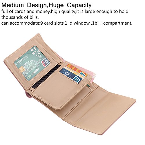 Spacious Interior :9 card slots,1 zipper pocket ,3 bill compartment,1 ID window,It can easily hold your business cards, ID cards, keys,cash,notebooks, etc /