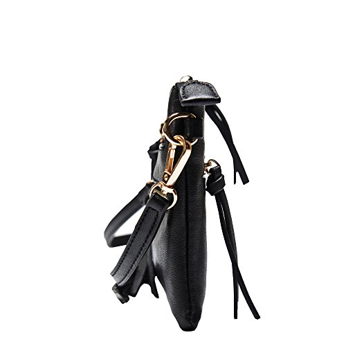 -. Feature : Faux leather & gold tone hardware / Metal zipper closure / 1 slip pocket inside / Attachable $ adjustable shoulder strap (25" drop) / 7.5" (W) x 5.5" (H) x 0.5" (D)