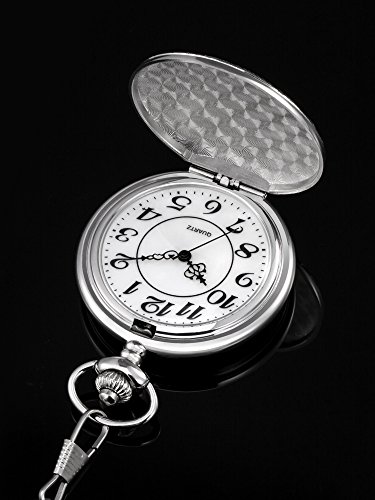 -. Title : Mudder Silver Quartz Pocket Watch Stainless Steel Pocket Watch with Chain