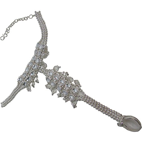 -. Feature : Adjustable bracelet and ring / Two in one - Arm slave bracelet that can also fit on average sized feet / Has sparkly, exotic dangles along with crystal-like stone / Bracelet opens to a maximum of 9" (adjustable) / Traditional design made in India