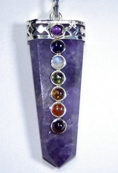 - Jet International Product. A++ Top Quality Amethyst Flat Chakra Pendant 1.75 -2 inch long approx. Genuine Authentic Original; Pouch Available. Best Seller Worldwide. Kindly note that since all our products are handcrafted, there always exists slight deviations in size, shape, color of the products compared to image shown here. However, the Healing Qualities & Metaphysical Properties are EXCELLENT.