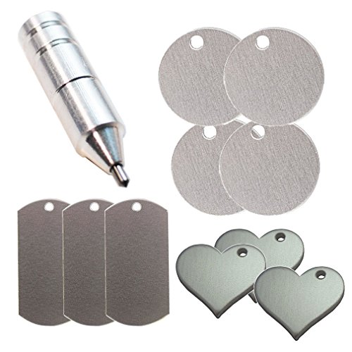 - Bundle includes Etching/Engraving Tool for Cricut Explore and Cricut Explore Air, and stamping blanks: 4 round, 3 heart, 3 dog tags.