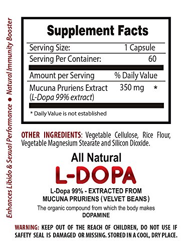 Studio : NATURE SUPPLEMENTS Publisher : NATURE SUPPLEMENTS Binding : Health and Beauty Product Description Natural female libido booster - L-DOPA (MUCUNA PRURIENSE EXTRACT) - Dopa macuna - 2 Bottles 120 Capsules POWERFUL LIBIDO BOOSTER: One area of note to Mucuna users is the sexual health benefits it delivers. The supplement can be beneficial for increasing libido in women and men. It heightens sexual arousal and increases sensitivity to touch. NATURAL MENTAL SUPPORT: Our natural formula can be beneficial for increasing energy levels, enhancing concentration and improving mood. By raising low dopamine levels, Mucuna Pruriens can have a positive effect on motivation, attention span, general outlook and many other aspects of mental well being. INCREASE TESTOSTERONE LEVELS: Many women and men notice an increase in sexual desire, libido and performance when taking the herb due to higher testosterone levels and Mucuna Pruriens is often considered an aphrodisiac. BOOST MUSCLE GROWTH: Dopamine levels, when increased, can help stimulate production of testosterone which then increases lean muscle mass. This can be very important because when more dopamine is produced, it can increase levels of testosterone and then increase protein synthesis - all helping muscle growth. 0