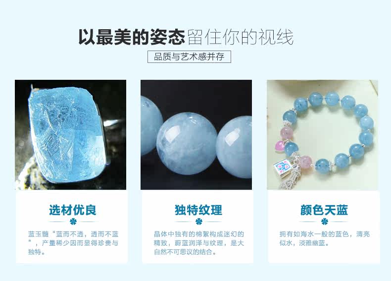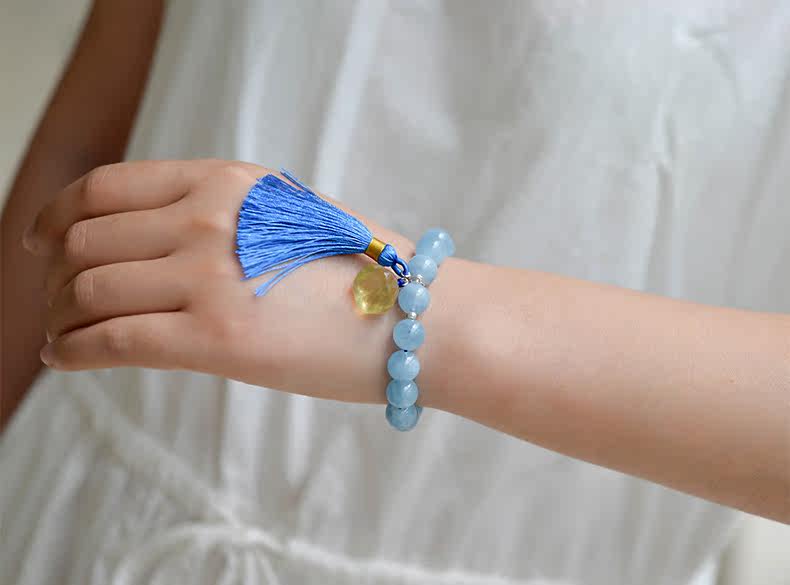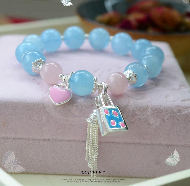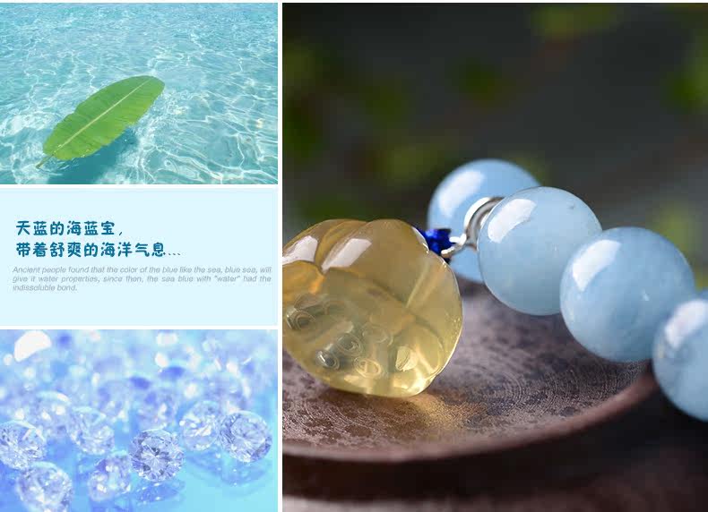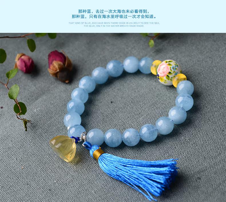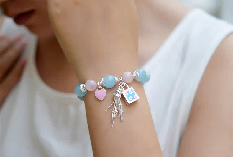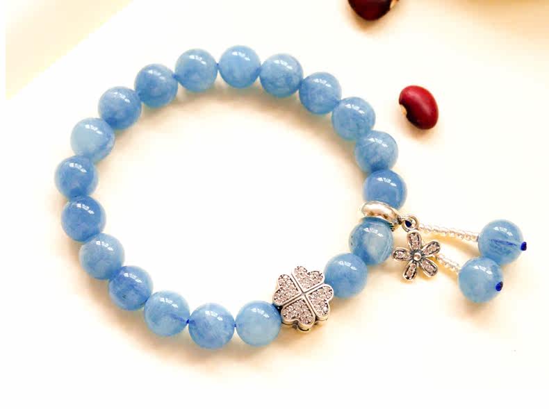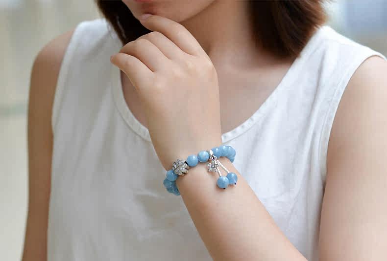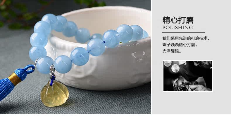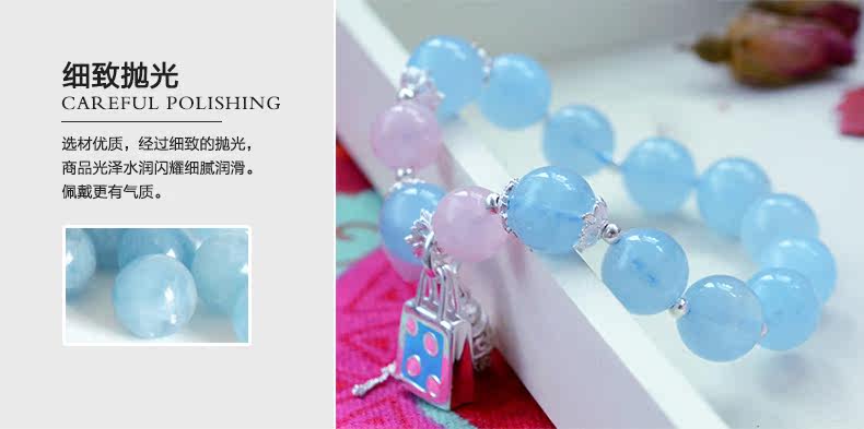 蓝玉髓手链男女款 水晶手手串饰品同心锁莲蓬女款 清新海蓝色