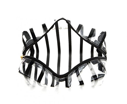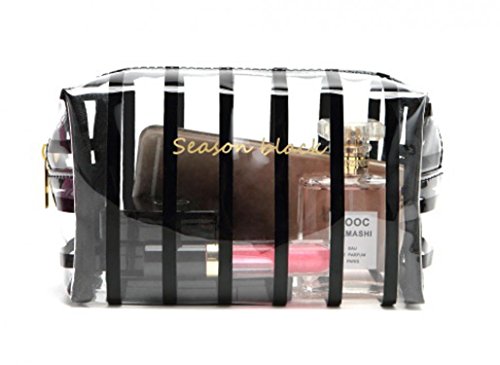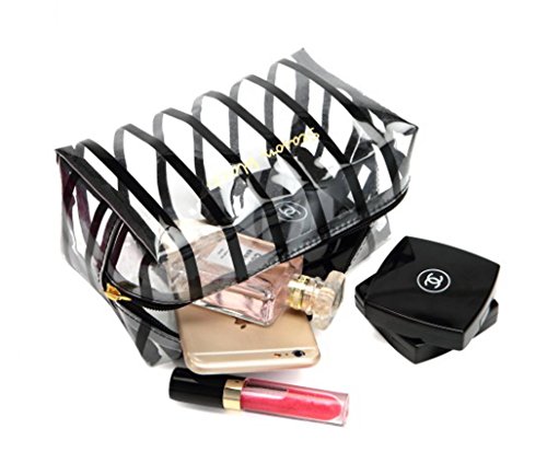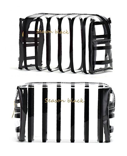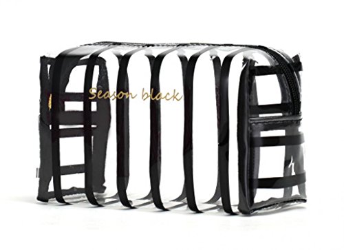 WODISON Womens Striped Beauty Bag Clear Makeup Cosmetic Case Pouch for Travel Black