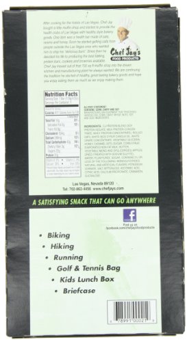 -. Binding : Misc. -. Brand : Chef Jay's -. Label : Chef Jays -. Manufacturer : Chef Jays -. PackageQuantity : 1 -. ProductGroup : Sports -. ProductTypeName : SPORTING_GOODS -. Publisher : Chef Jays -. Studio : Chef Jays -. Title : Chef Jay's Tri-O-Plex High Protein Food Bar