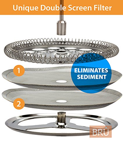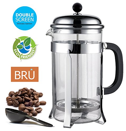 -. Brand : BRU USA -. Color : Chrome -. EAN : 0885690985888 -. Feature : ★★ VINTAGE DESIGN ★ SUPERIOR QUALITY ★★ Brews 1 Liter (8, 4 oz cups) of the best tasting coffee. / SIMPLE TO USE / EASY TO CLEAN - Brew the perfect cup of coffee in just four minutes / Simply rinse in the sink, or you can clean it in your dishwasher. / ECO FRIENDLY - This is a reusable coffee press that only requires fresh ground coffee and hot water. Say Goodbye to Paper Filters and Plastic K-Cups. / DOUBLE SCREEN FILTER - Our unique stainless steel - double filter system, eliminates unwanted sediment and guarantees that the only thing in your cup is pure delicious coffee. / PREMIUM QUALITY - Using only the highest quality materials, ensures that you receive a product that is long lasting and enjoyable to use. Carafe is made of durable, heat-resistant borosilicate glass. The liner attached to the lid keeps it from getting too hot, ensuring your safety during the brewing process. PLEASE NOTE: Not all French Presses are equal - although they may look alike. Don't be fooled by cheap imitations. Stick with the brand you could trust! ★ ORDER NOW! -. Label : BRU USA -. Manufacturer : BRU USA -. MPN : BRU1LCCP -. PackageQuantity : 1 -. PartNumber : BRU1LCCP -. ProductGroup : Kitchen -. ProductTypeName : KITCHEN -. Publisher : BRU USA -. Size : 34 Once, 1 Litter -. Studio : BRU USA -. Title : SALE! Classic French Press - BRU USA Coffee & Tea Maker | 8 Cup - 34 Oz | Stainless Steel, Enhanced DOUBLE Filter and Heat Resistant Borosilicate Glass -. UPC : 885690985888