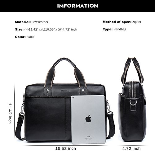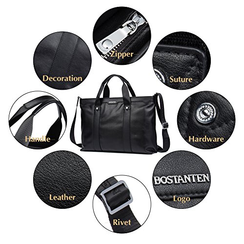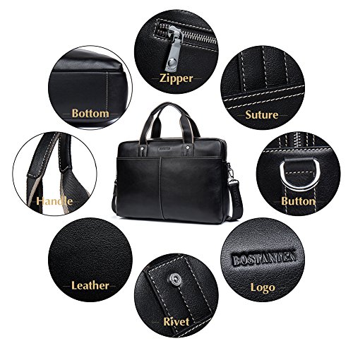 -. Feature : ELABORATE BAG is made of high quality genuine cow leather, durable fabric lining, with custom hardware, heavy-duty zipper. Zipper closure for your security. / STRUCTURE: Contains 1 big inner compartment, 1 cell phone pocket, 1 inner zipper pocket, 1 laptop pocket. 2 pockets outside, one of with is zipper closure and another is on the front of the bag. The men briefcase easily hold your 15 inch laptop, iPad, iPhone, a4 file, and other business things. / DIMENSIONS: (L)16.5" x (W)4.7" x (H)11.4" inch. / ATTENTION : BOSTANTEN products ONLY delivered by BOSTANTEN or FBA. And we have our own trademark. If you buy BOSTANTEN products from other delivery channel, BOSTANTEN disclaim any responsibility for your purchasing. There are many different bags on our store. You can search BOSTANTEN on the amazon.