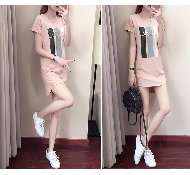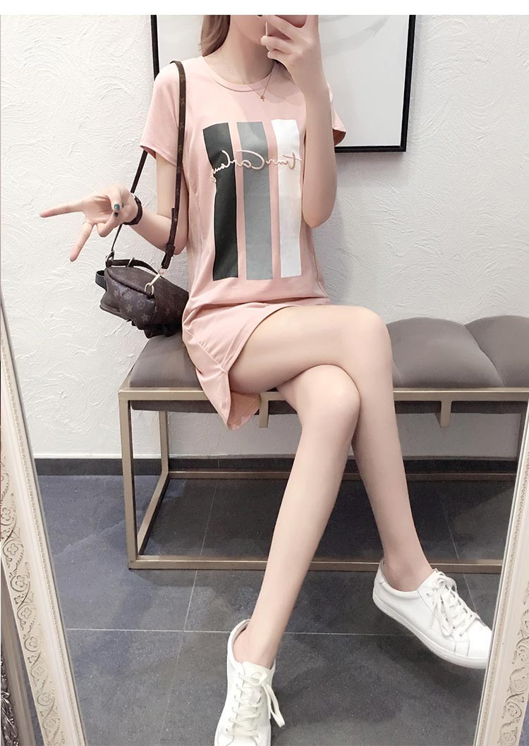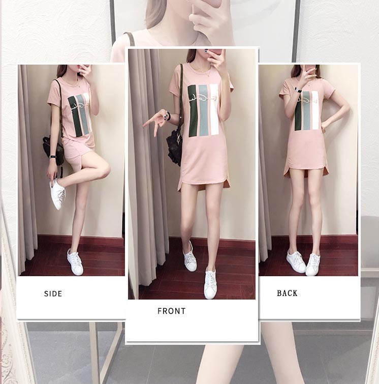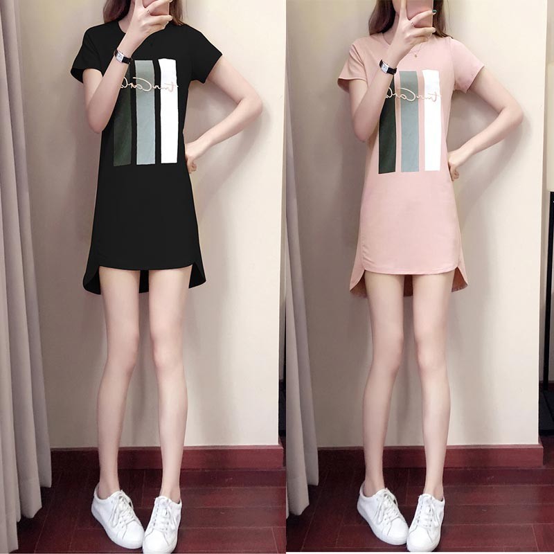 胸に縦ボーダーとロゴ入りの半袖ショート丈のTワンピース♪