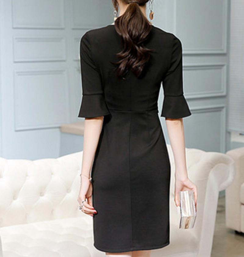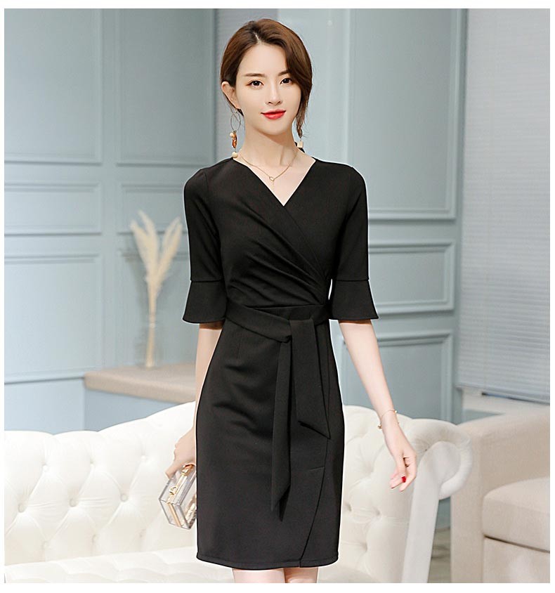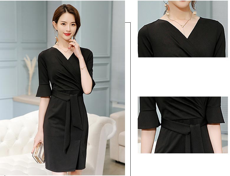 5分丈ベルスリープ・ひざ丈・ブラックカラーのカシュクールワンピース♪