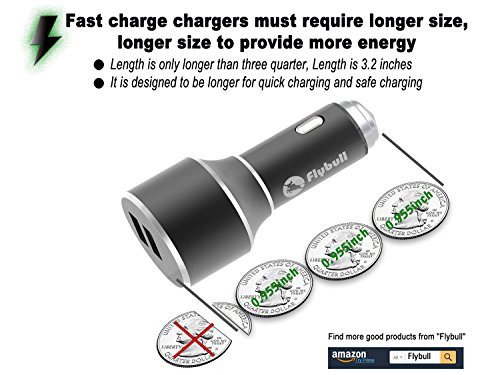 ★Flybull Car Charger has double intelligent charge management chips, which can intelligently identify charging current and voltage data of your cell phones, and tablet computer, providing them with the best, safest and fastest charging. The double USB ports of the charger can supply maximum 40W charge power altogether.(Don't fit for Japanese cars)
