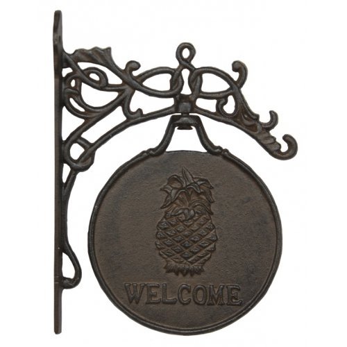 - Features an oval plaque that swivels with a pineapple and "WELCOME" on both sides