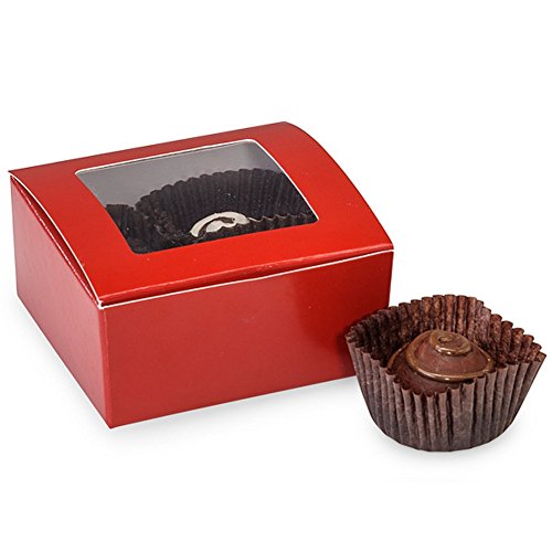 Binding : Kitchen Product Description These festive Cherry Red 4-piece Truffle Boxes feature a snap lock bottom and a tuck top lid with a see-through window. Complies with FDA regulations for food packaging. The perfect Christmas and Valentine candy box! These candy boxes measure 2 5/8in. x 2 3/4in. x 1 1/4in. Candy and candy cups are not included. Sold in a pack of 25. 0