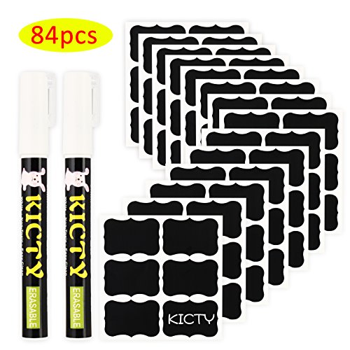 UNIQUE DESIGNS - Pack of 84 Chalkboard Labels and 2pcs 3mm chalk marker tip pens! You get attractive results in 3 EASY steps: write, Peel and Stick. Endlessly REUSABLE - you can switch contents for your jars whenever you need - Effortless Wipe Off the writing, Peel and Re-stick. Their fineness makes them REMOVABLE with No Mess. Write on with traditional chalk or use the Liquid Chalk Pen and wipe clean with a damp cloth.