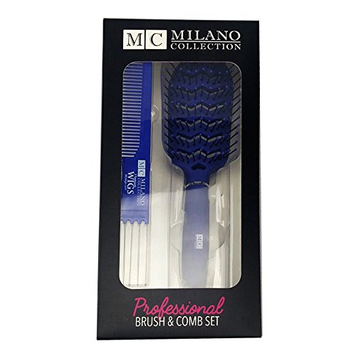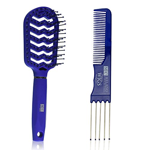 Milano Collection Metal Prong Lifting & Teasing Comb & Vent Hair Brush Set for Professional Salon Use for Hair and Wigs (Alopecia Blue)