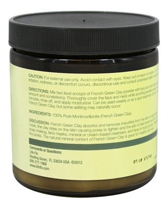 -. Binding : Health and Beauty -. Brand : Life-Flo -. EAN : 0890572786651 -. Feature : Life Flo Health Products -. Label : Life Flo Health Products -. Manufacturer : Life Flo Health Products -. Model : 645951242934 -. MPN : fcr-mft-gnen02019 -. NumberOfItems : 1 -. PackageQuantity : 1 -. PartNumber : fcr-mft-gnen02019 -. ProductGroup : Health and Beauty -. ProductTypeName : HEALTH_PERSONAL_CARE -. Publisher : Life Flo Health Products -. Size : 7.5 oz -. Studio : Life Flo Health Products -. Title : French Green Clay (Unscented) Life Flo Health Products 7.5 oz Powder -. UPC : 885263458375