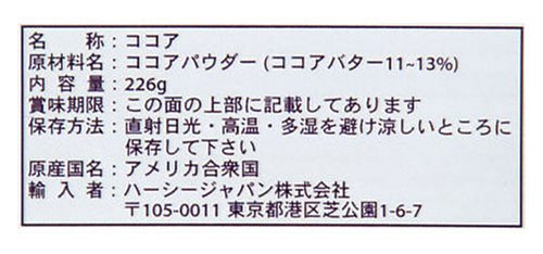 원본상품명: Hershey(ハシ) ピュアココア 226g