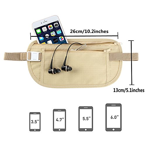 ★WIDE USE: Travel Money Belt perfect for travel Passport Cash Earphone iPhone 6 7S plus,Samsung Galaxy Note etc.