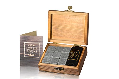 -. Title : Whiskey Stones Gift Set - 9 Granite Chilling Whisky Rocks - no water dilution - stored in Wooden Premium Box – Best quality Bar Accessories for Any Beverages by Lord’s Rocks