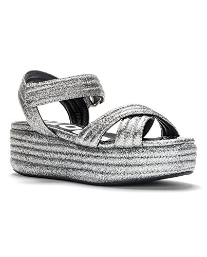 Product Description BIMBA Y LOLA padded wedge sandals in silver lurex fabric. From the Drag Racer Collection, with details inspired by motor cars such as padded fabrics, vibrant leathers and metallic embellishments. The cut, the crossed straps and the customised quick fastening Velcro are reminiscent of the protective suits worn by racing car drivers. The BIMBA Y LOLA FW17 season is inspired by speed. This season, the shoe collection has been updated with new materials, models and metallic details. #thisisSPEED Detail Heel height: 5.5?cm Customised insole with maxi logo Includes BIMBA Y LOLA protective bag Official brand size equivalence for Women Shoes. Size 35 | USA 5 ? ?|?UK 2 Size 36 | USA 6 ? ?|?UK 3? Size 37 | USA 6.5 |?UK 4? Size 38 | USA 7.5 |?UK 5? Size 39 | USA 8 ? ?|?UK 6 Size 40 | USA 9 ? ?|?UK 7? Size 41 | USA 10 ?|?UK 8? Size 42 | USA 11 ?|?UK 9? Size 43 | USA 12 ?|?UK 10 0