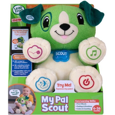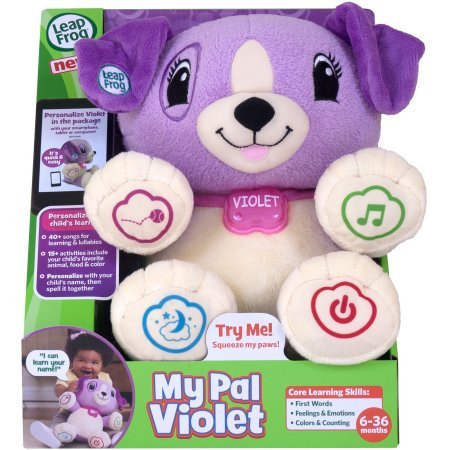 -. Feature : LeapFrog My Pal Scout; Age Range: 6 - 36 months Personalize the learning! Teaches first words, feelings and emotions, colors and counting; Teach Scout your child's name and favorite things for personalized learning in 15+ activities. Listen along to 40+ learning songs, melodies and lullabies, for active daytime fun and nighttime soothing. Teaches first words, feelings and emotions, colors and counting. / LeapFrog My Pal Violet; Ages 6-36 months. Personalize the learning! Teaches first words, feelings and emotions, colors and counting / Connect Scout to your smart phone, tablet or computer for easy personalization while he's still in the box. This cuddly pal is recommended for children ages 6-36 months.