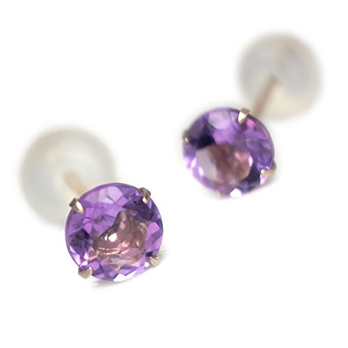 -. Title : K10イエローゴールド4mm ピアス スタッドピアス 両耳用ペア 2月誕生石アメジスト