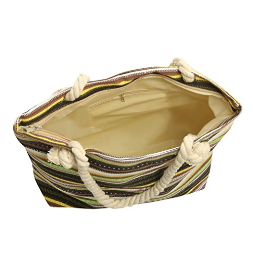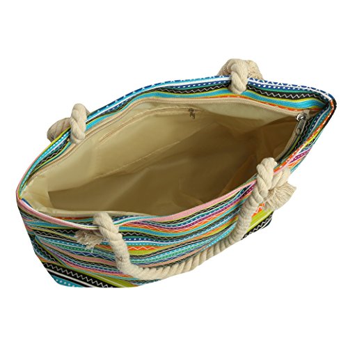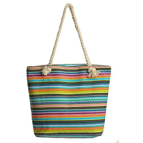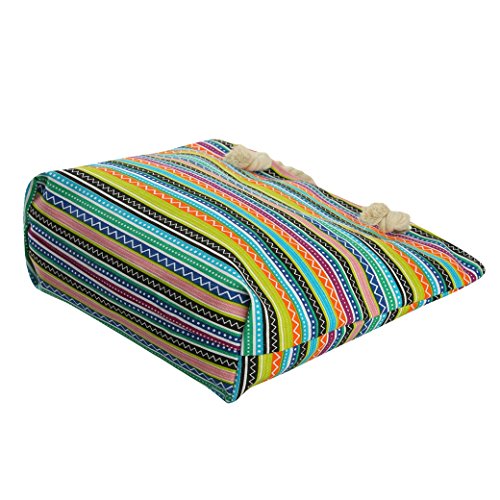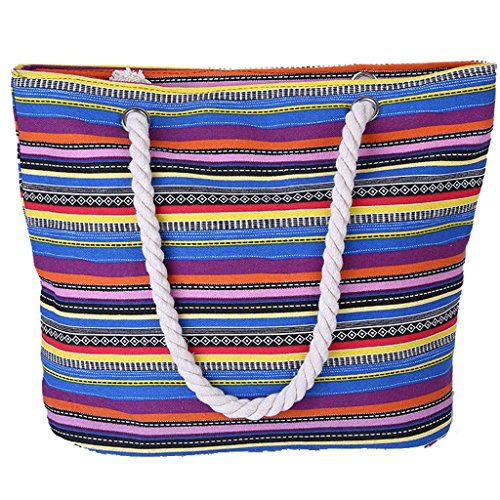 -. Feature : Made of 60% Cotton. 40% Polyester. / Dimension: Length*width*height= 40*12*35 cm(15.7 inches*4.7 inches*13.7 inches), Weight: 240g / Features: P.R.Inted Stripes. Bright colors mixed. Two Rope, Inner pocket for smaller items such as mobile phone or wallet, zip closure. / Purpose: Travel, Holiday/Vacations, Beach holiday, Grocery Shopping, Casual occasions etc. / PERFECT FOR HOLIDAYS: Lightweight, foldable design ensuring this will easily fit into a suitcase or even use the bag as your hand lage