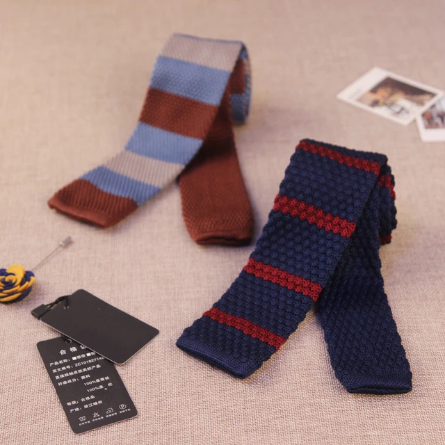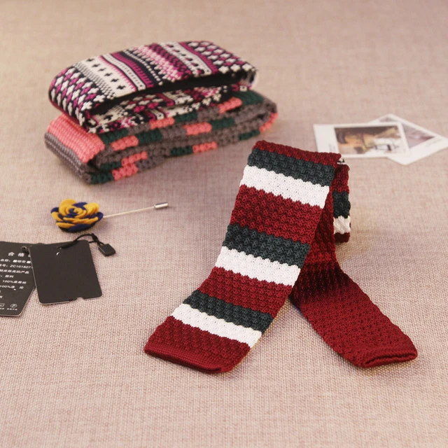 | [해외]고급 남성 니트 넥타이 좁은 스트라이프 넥타이 남성 조수 영국 바람 니트 넥타이 |