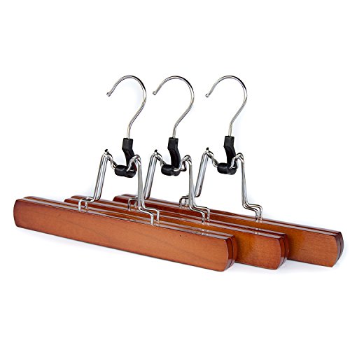 MULTI-PURPOSE AND EASY TO USE – Customize with the rotating chrome swivel hooks and easy locking pant bar. Great wood hangers for pants and skirts, easily use as slacks hangers and shorts hangers too.