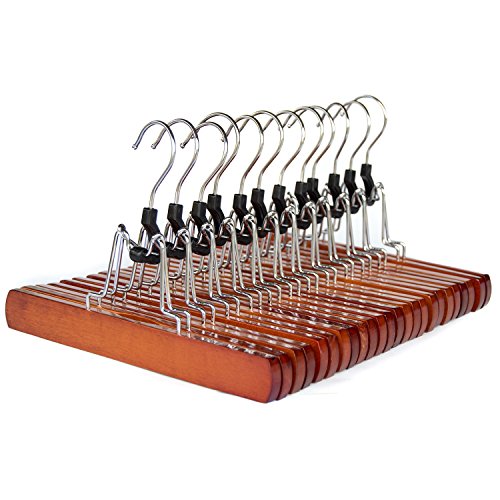 Clutter Mate (Set of 12) Wood Pant Hangers With Premium Cherry Finish For Pants and Slacks