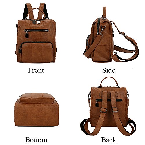 -. Feature : ❤ HIGH QUALITY & DURABLE MATERIAL High quality PU leather with nylon lining and solid hardware,polyester soft interior, comfortable hand feeling,Classic simple design clutch, lightweight and soft hand feeling.makes this rucksack backpack more high-end. / ❤ DIMENSIONS LxHxW ( 9.8"x 5.1"x 12.2") Weight : about 1.6 lb. / ❤ EXTREMELY PRACTICAL 2 front zipper pockets + 2 sides open pockets(Easy access doctor bag-style opening)+1*back anti-theft zipper pocket. Internal structure:1* main compartment+1* independent zipper pocket+1* back zipper pocket + 2*small pockets.Super capacity can hold your iPad/Smartphone/Water Bottle/clothes/books/pens/wallet/umbrella and other essential items. / ❤ MULTIFUNCTION A removable long straps and A pair of adjustable back strap make the bag to be varied, Could be used as travel backpack, Handbags ,Shoulder Bag and Crossbody bag . You can carry it to school, college, hiking, shopping, cycling, traveling, dating, etc. Perfect gift for your daughter,girlfriend,friend,colleague,mother or yourself. / ❤ NOTE:The actual color of the backpack maybe have little different from the picture due to the different screen of display or reflecting light when shooting.Any problems with your bag, please contact us. We will solve it. 30 days free full refund or exchange at ANY reason,just pls make sure the item is resellable with original packing .thanks for your undersatnd and wish you have a good shopping~~