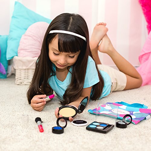 The perfect pretend makeup set - with all of the essentials! You won't believe how realistic this fake makeup looks. With vibrant shades and a realistic texture this set is sure to please your little girl. And like all Little Cosmetics products, the makeup is completely fake and absolutely mess free! Little Cosmetics is quality pretend makeup that looks and feels realistic. The pretend makeup does not transfer onto skin or any material. It does not apply to skin and does not stain. This is not real makeup. Little Cosmetics is fake, toy makeup intended for creative play.Feature