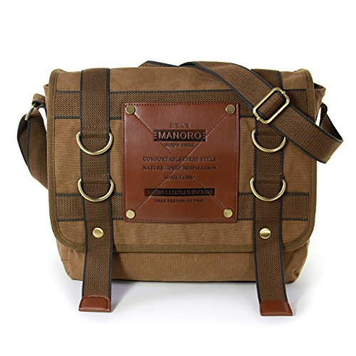 -. Title : Umhängetasche, Messenger Bag Canvas khaki, braun Crossover Tasche Schultertasche Bürotasche Manoro® Vintage and Vogue OTK212N