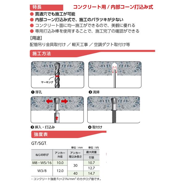 ●ねじの呼び:W3/8 全長:30mm ねじ部長さ:12mm 穿孔径:12.5mm アンカー 埋込み長さ:30mm 穿孔深さ:30mm アンカー外径:12mm