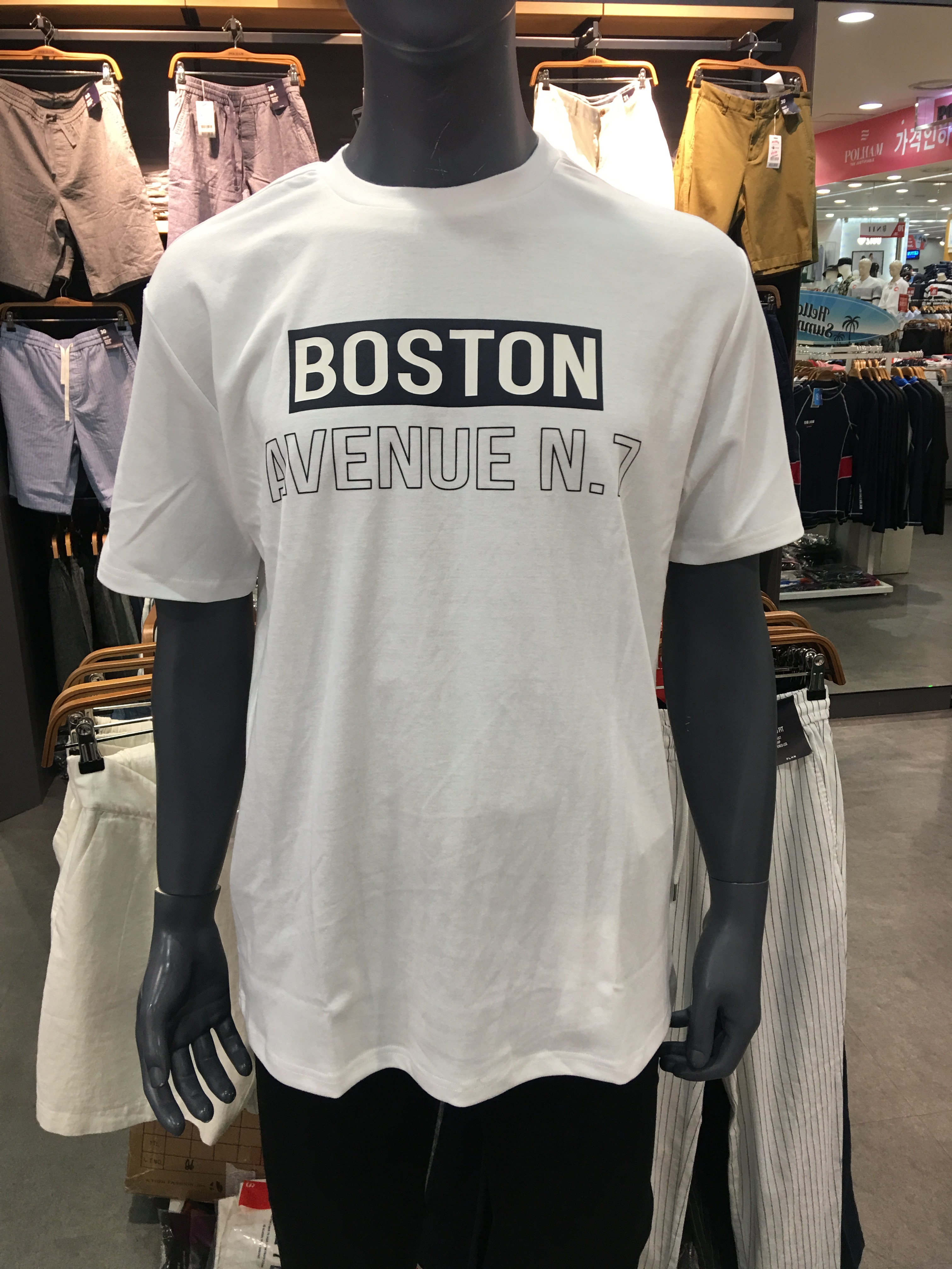 반팔이지만 가을초기상품으로 나와서 약간의 두께감은 있지만 간절기에도 착용하기 좋으며,영문 그래픽 포인트를 주어서 밋밋함을 없애고